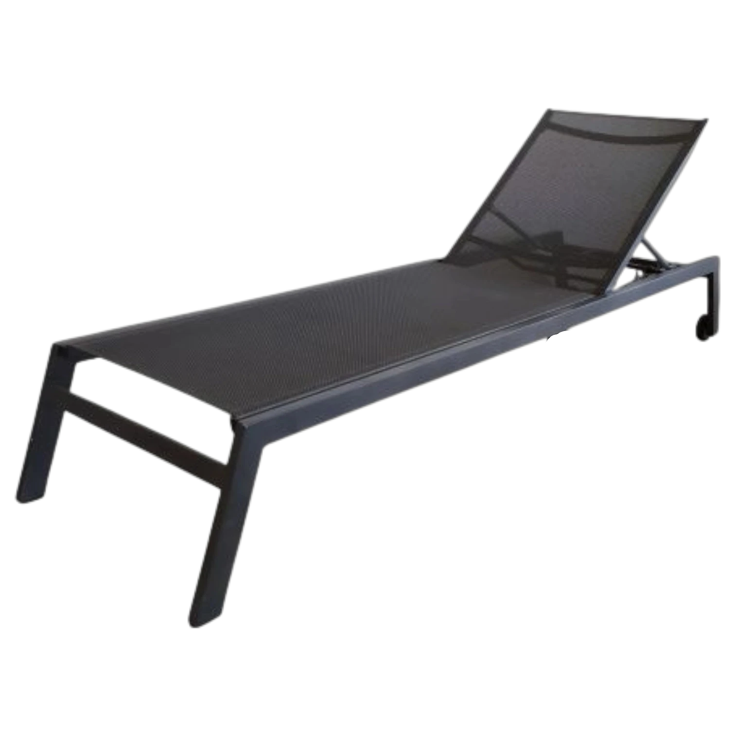 The Lagos Sun Lounger combines a sturdy aluminum frame with breathable textilene fabric for lasting outdoor comfort.