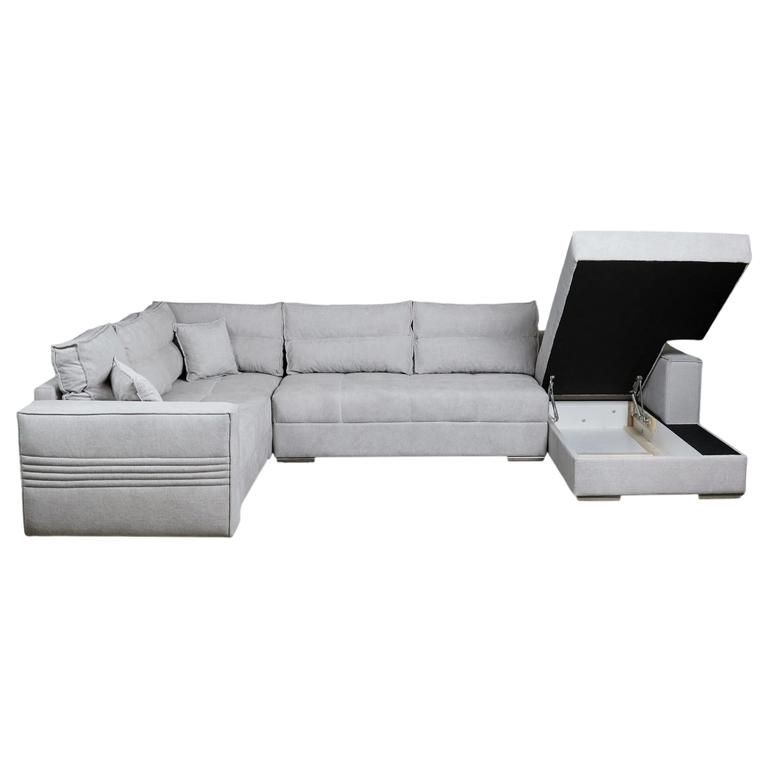 The Arctic U Sofa redefines comfort and spacious luxury. Designed in a generous U-shaped configuration, it provides ample seating for family gatherings or relaxation. Upholstered in premium fabric material, it offers a soft, inviting texture with exceptional durability. The sleek light grey color adds a contemporary feel, making it a perfect centerpiece for modern living rooms. The Arctic U Sofa blends style, comfort, and functionality effortlessly.