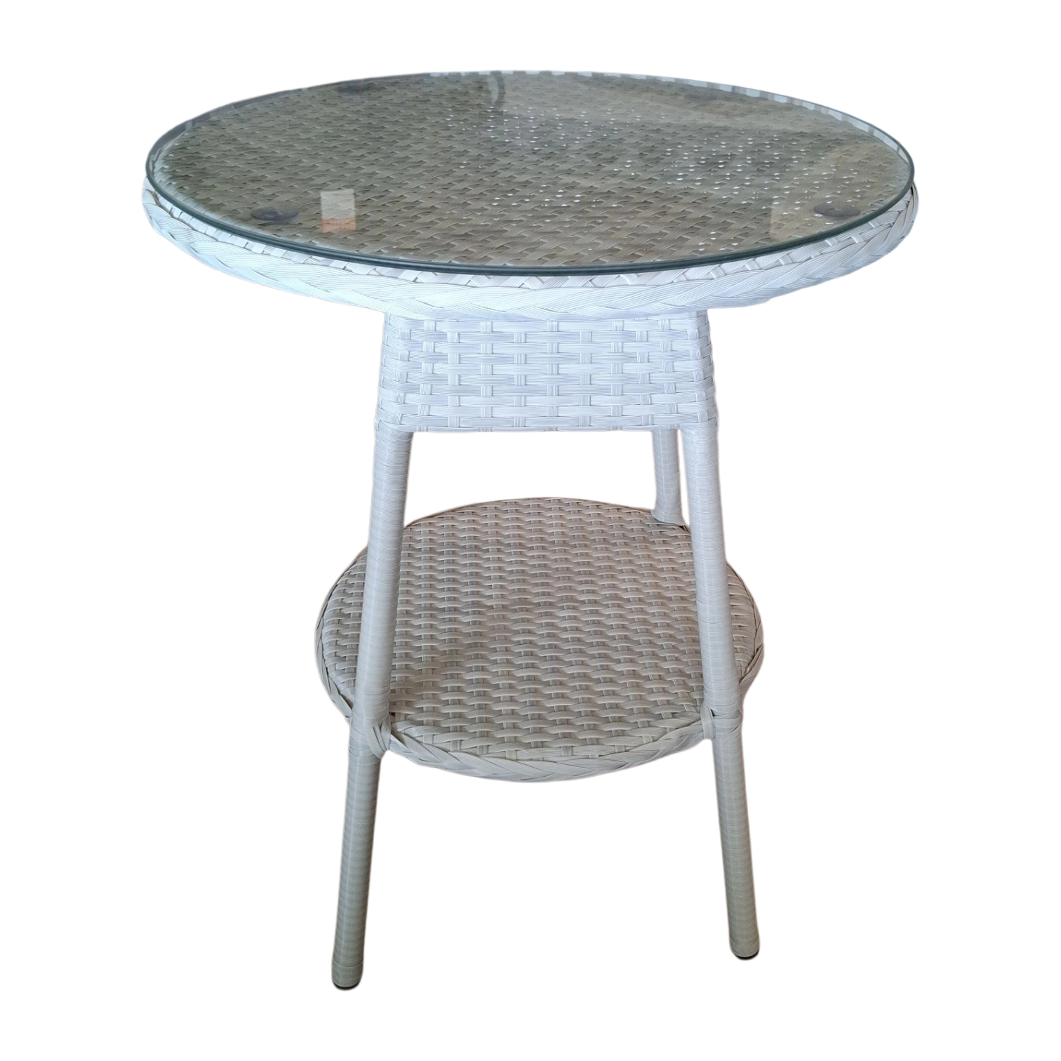 KATRINA Coffee Table — Beautiful rattan coffee table with a glass top and lower shelf. Ideal for outdoor lounges, patios, or balconies.
