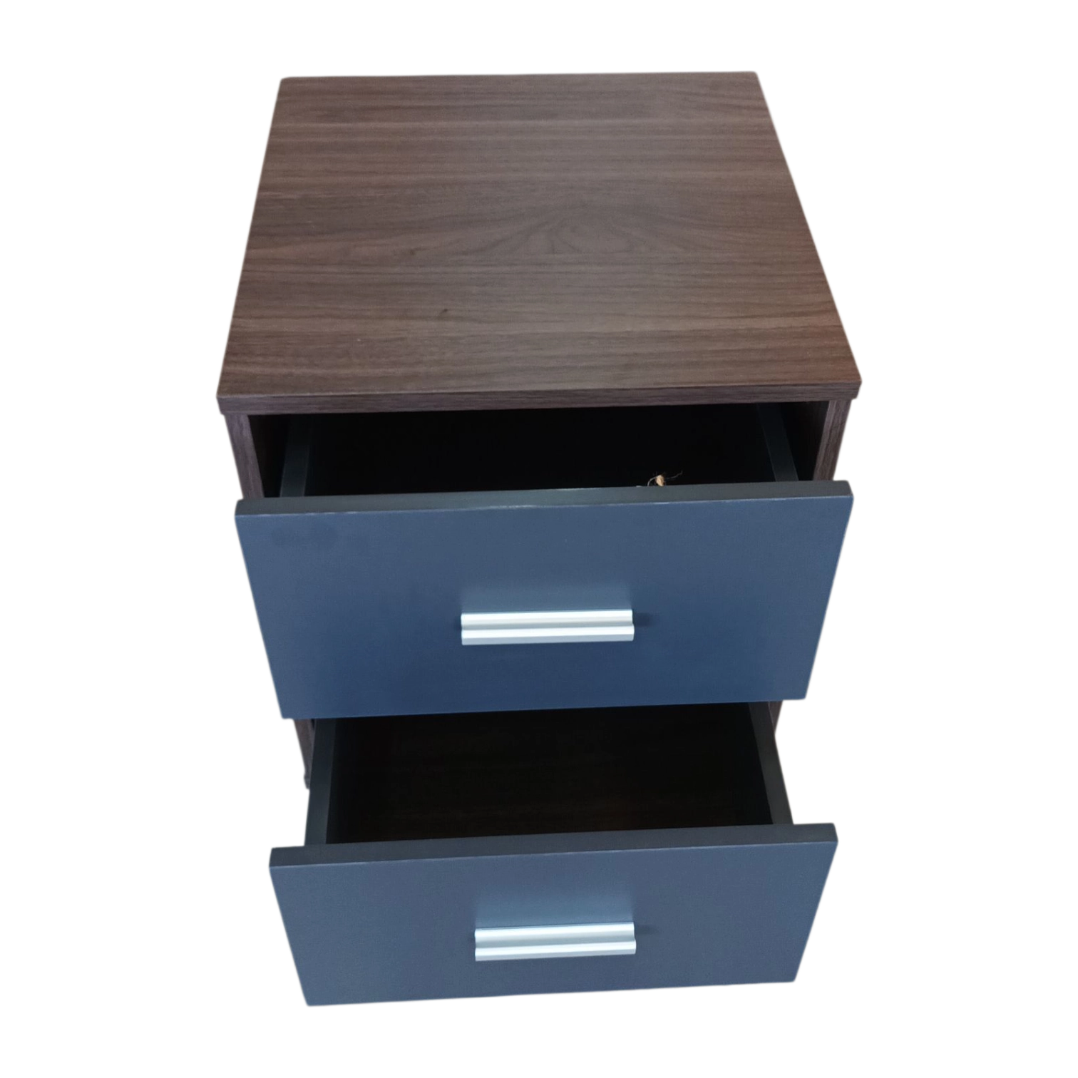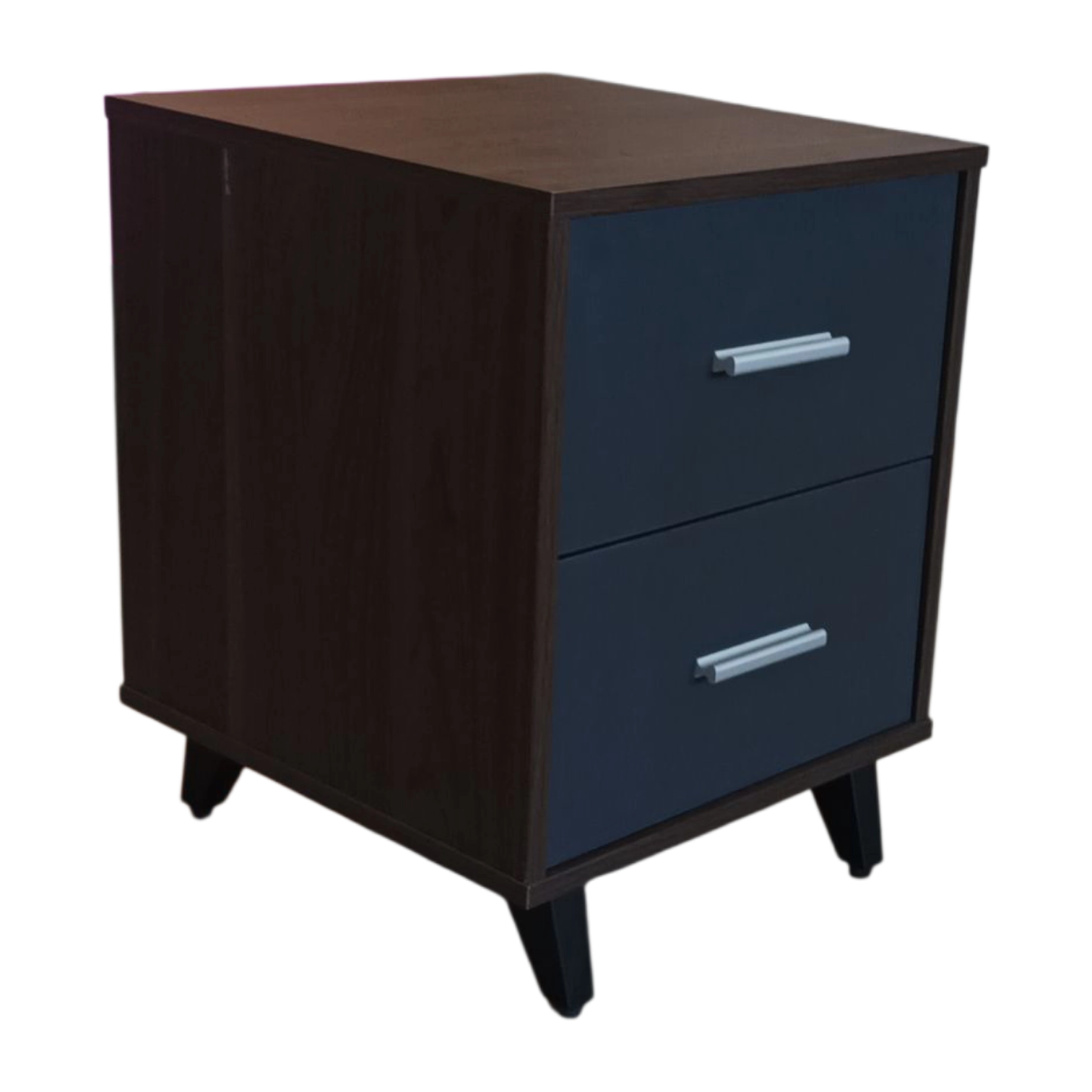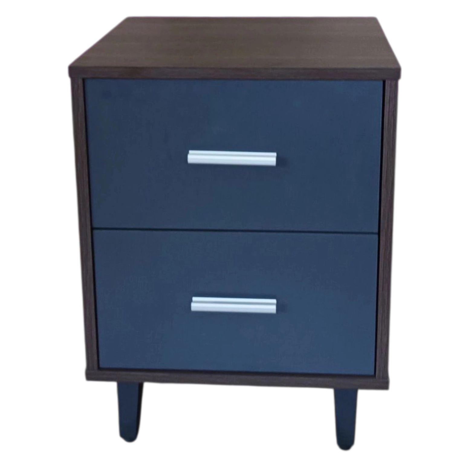 The Berlin Nightstand combines modern design with functional charm. Built from sturdy melamine and accented with grey drawers, it features sleek metal handles and angled legs for a touch of retro elegance. The two roomy drawers provide ample space for your essentials, keeping everything within reach. A perfect addition to any bedroom, the Berlin Nightstand balances form, function, and style beautifully.
