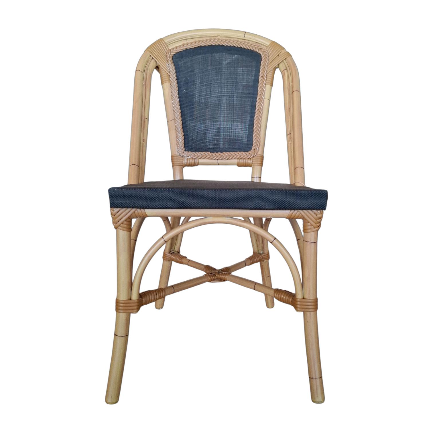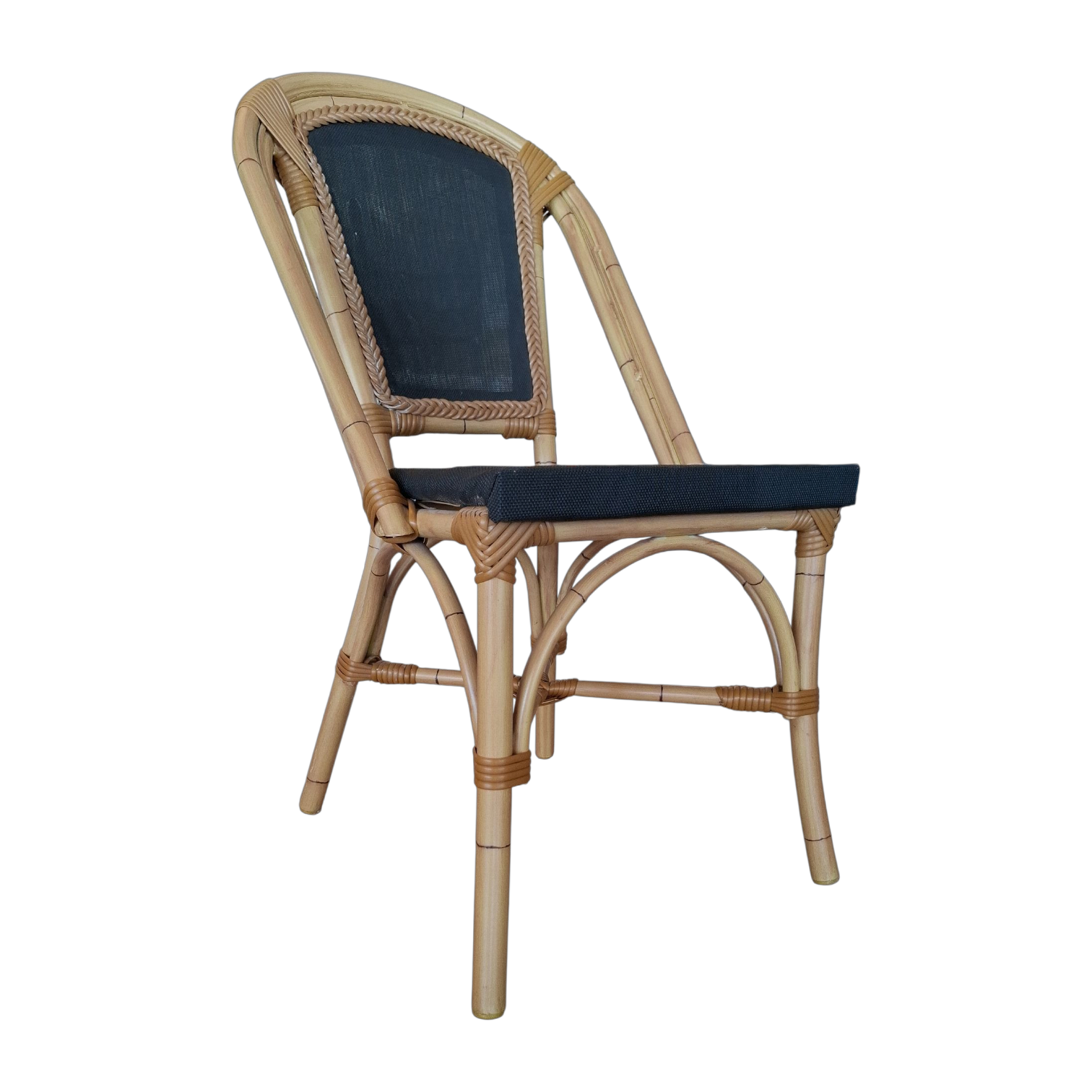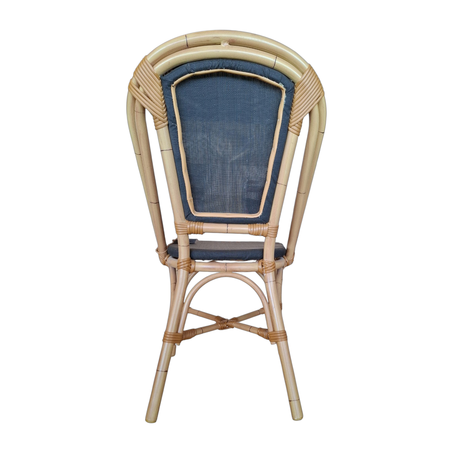 BINO Chair — Elegant aluminum chair with textilene seat and back in a bamboo-look finish. Lightweight, durable, and perfect for cafés, restaurants, and outdoor areas.