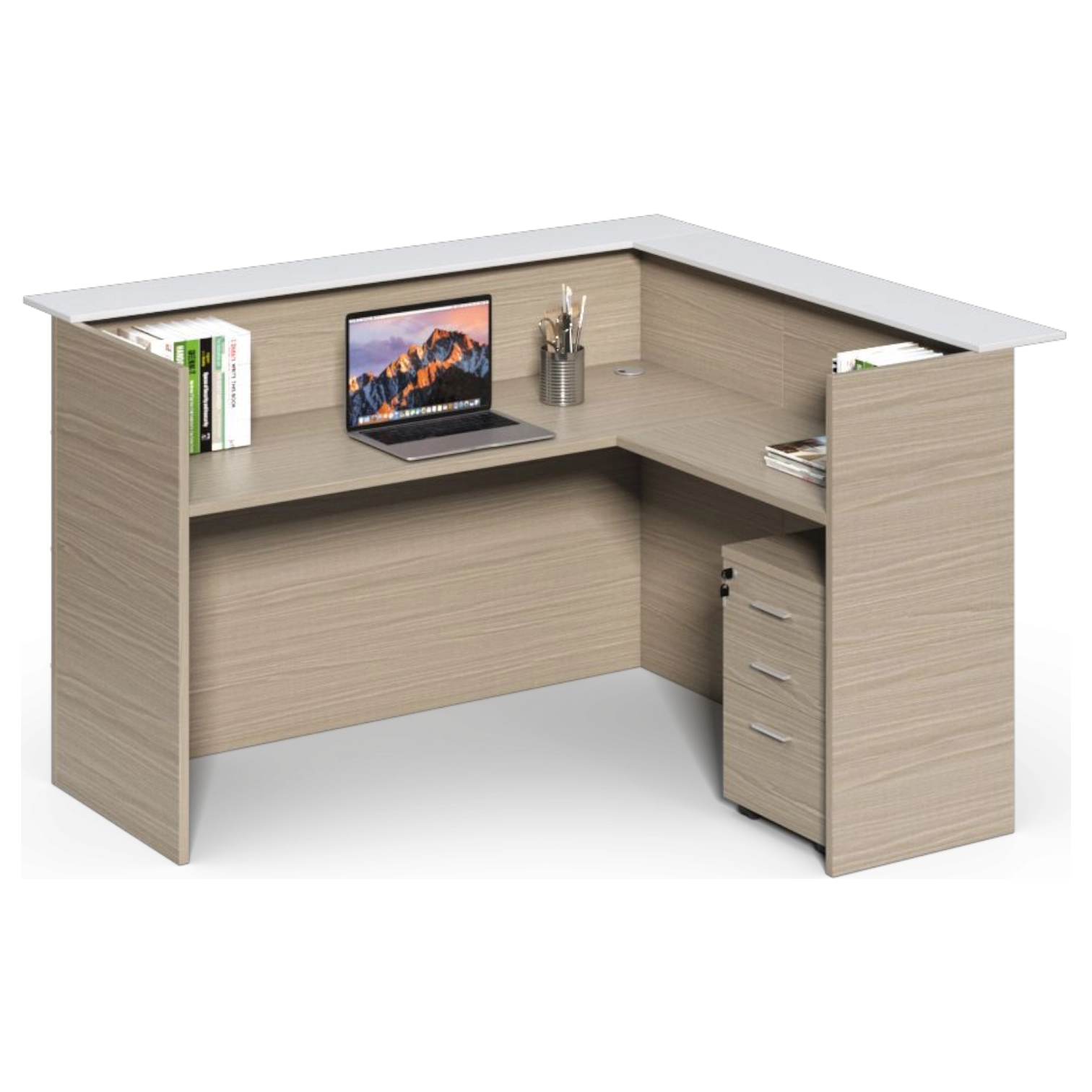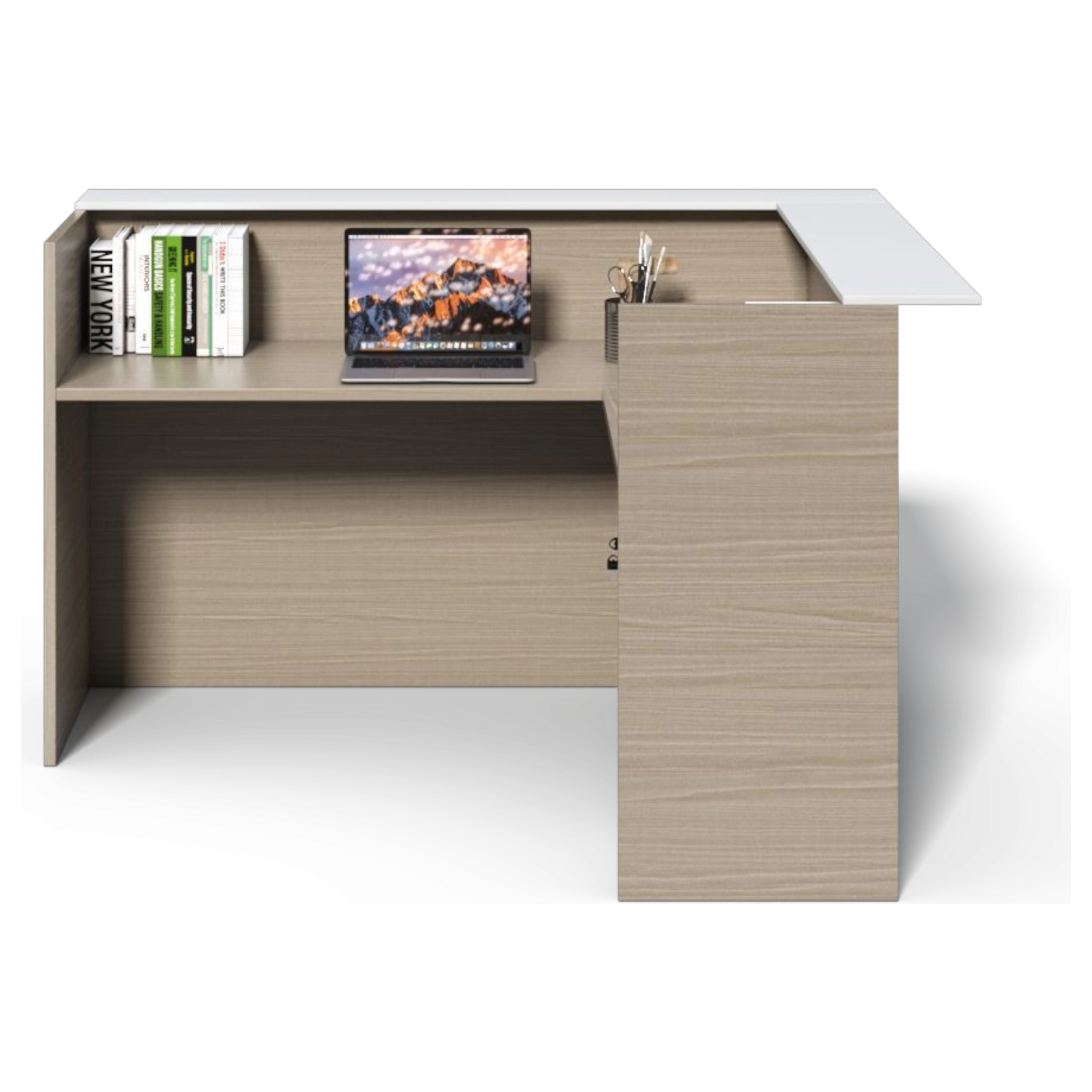 The Brixton Reception Desk is designed to create a welcoming and professional first impression. With its wide 200cm workspace, high counter top, and practical L-shape layout, it gives you a comfortable place to work while keeping everything organized and within reach.