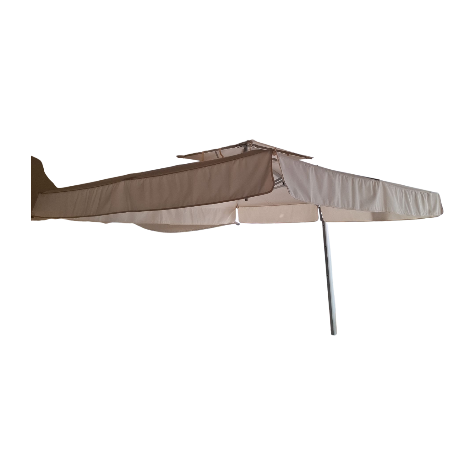 The Capri Side Pole Umbrella offers refined shade and sturdy design for outdoor elegance. Measuring 2.5×2.5m, it features a strong aluminum side pole (82x58mm) with 7 support ribs (20x14mm) and a stabilizing pole for added durability. The matte aluminum frame with powder coating (5M2) ensures long-lasting protection against weathering. Equipped with a smooth crank system, rotating base (BR32C), and cross base for secure placement, it provides flexible positioning and easy operation. The 300g/m² natural polyester canopy (D3004004C59) with PU coating, air vent, and flap delivers excellent UV resistance and ventilation. The Capri Side Pole Umbrella perfectly blends strength, function, and timeless outdoor sophistication.