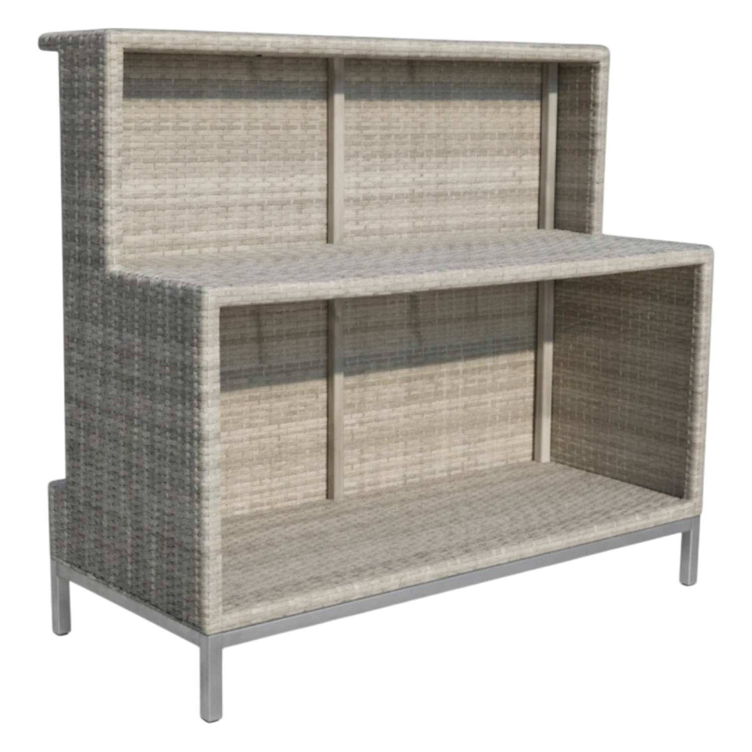 The Wiscon Bar is designed to bring style and functionality to your outdoor entertaining area. With its woven finish and spacious shelving, it offers plenty of room to prepare drinks, store bottles, and serve guests with ease. A perfect choice for creating a relaxed bar setup in your garden or patio.