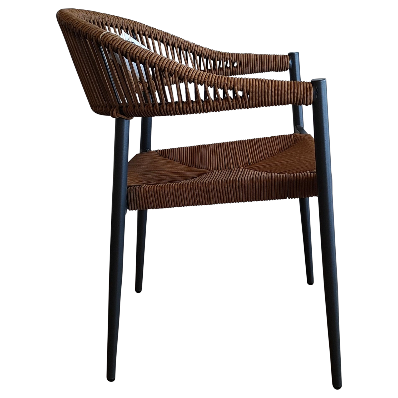 Enhance your outdoor seating with the Brown Wicker Carmen Armchair, featuring a sleek Aluminum frame and hand-woven rope design. Comfortable, durable, and UV-resistant, this stylish chair is ideal for patios, balconies, or poolside lounges. Combines natural warmth with modern strength for everyday outdoor living