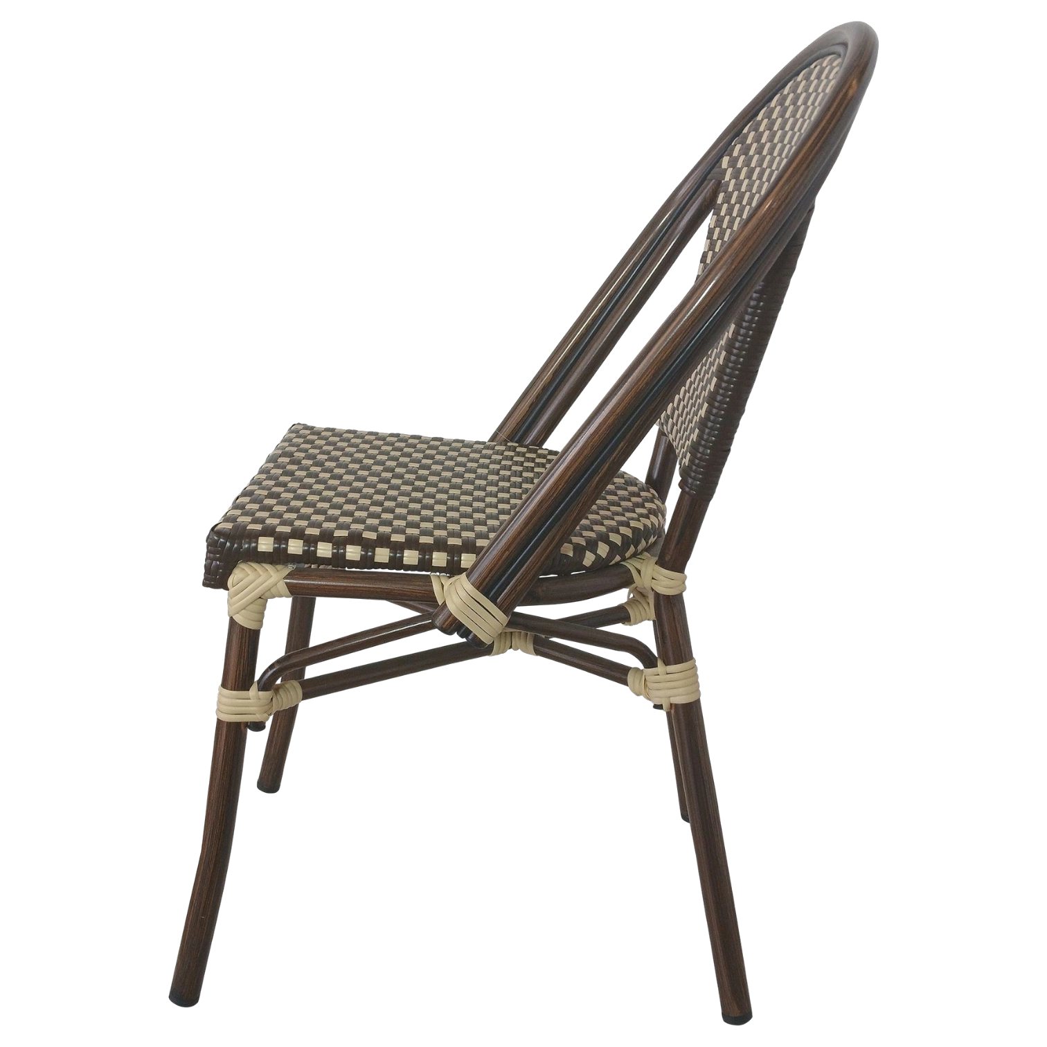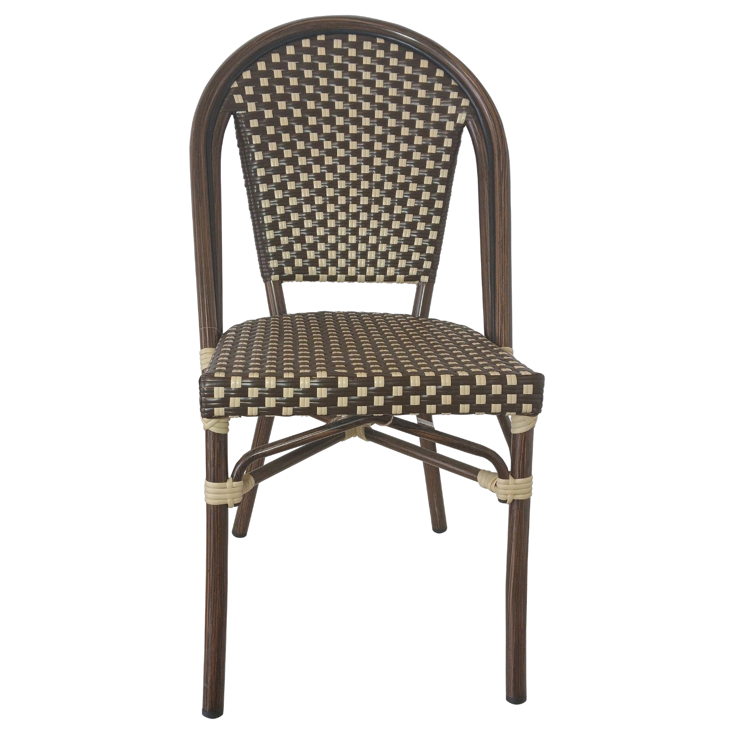 CANNES Chair — Elegant rattan-style chair with a woven seat and back. Perfect for cafés, patios, and restaurants, combining comfort and durability.