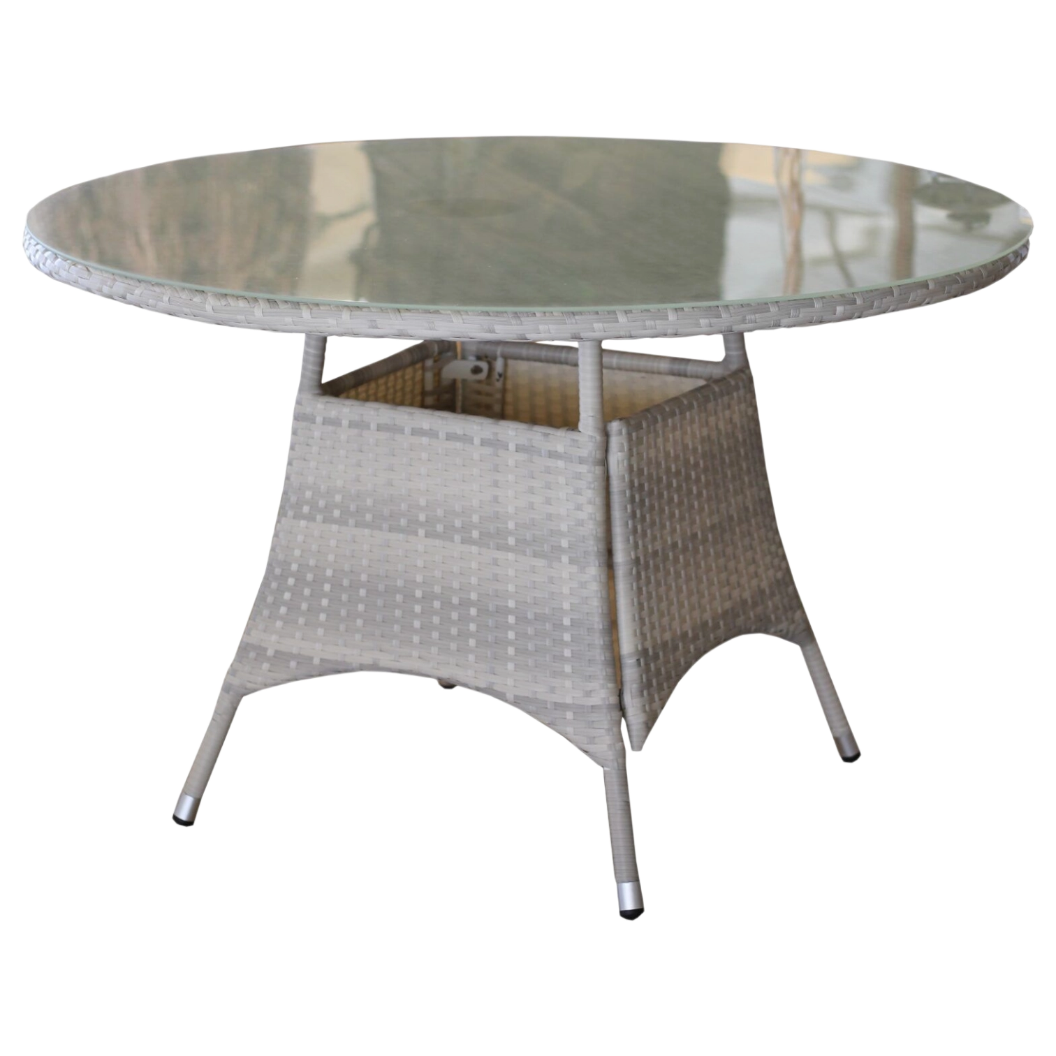 Outdoor Dining Table with Aluminum, Glass and Wicker details