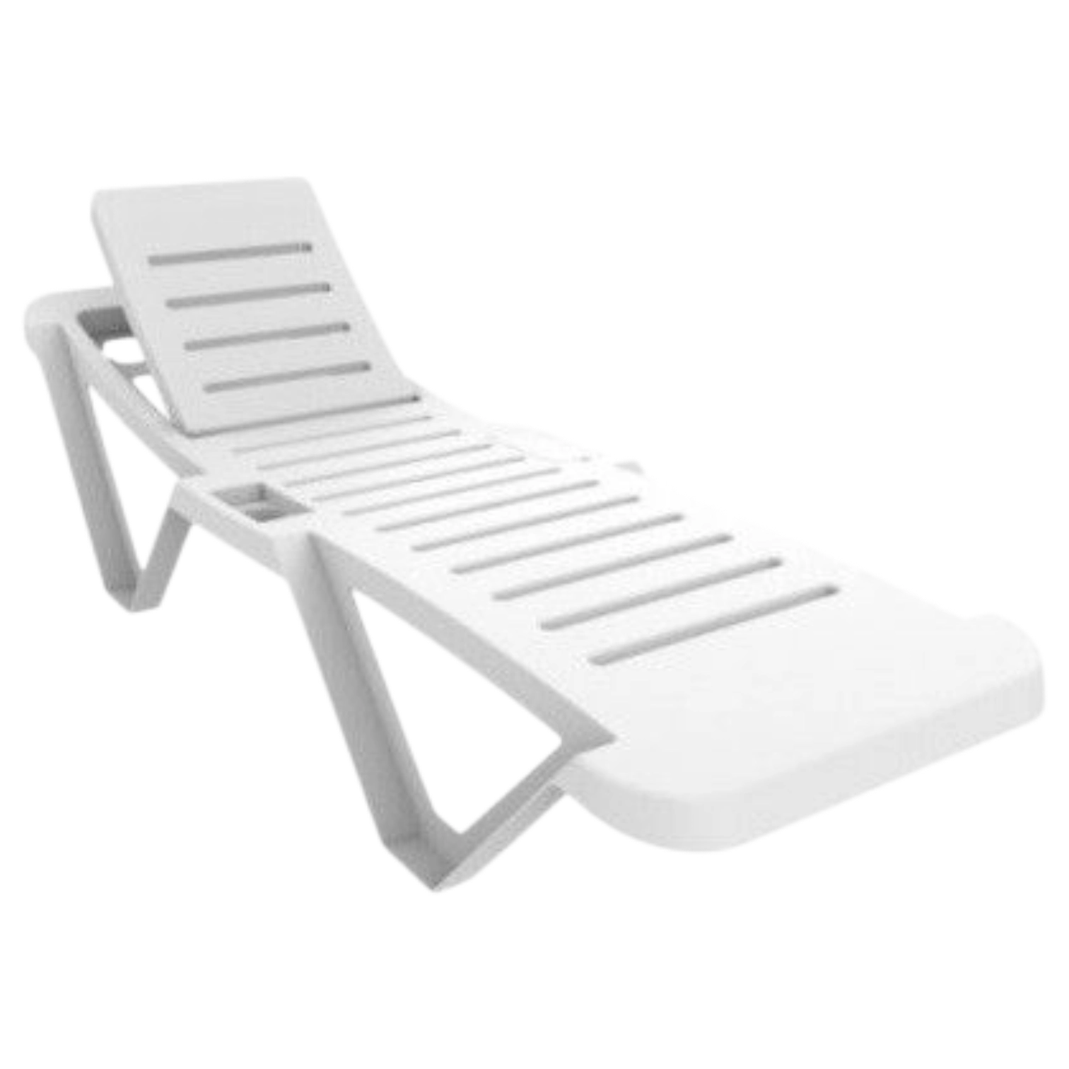 MASTER Sunbed — Strong plastic sun lounger with an adjustable backrest. Ideal for pools, beaches, and hotels, offering comfort and easy cleaning.