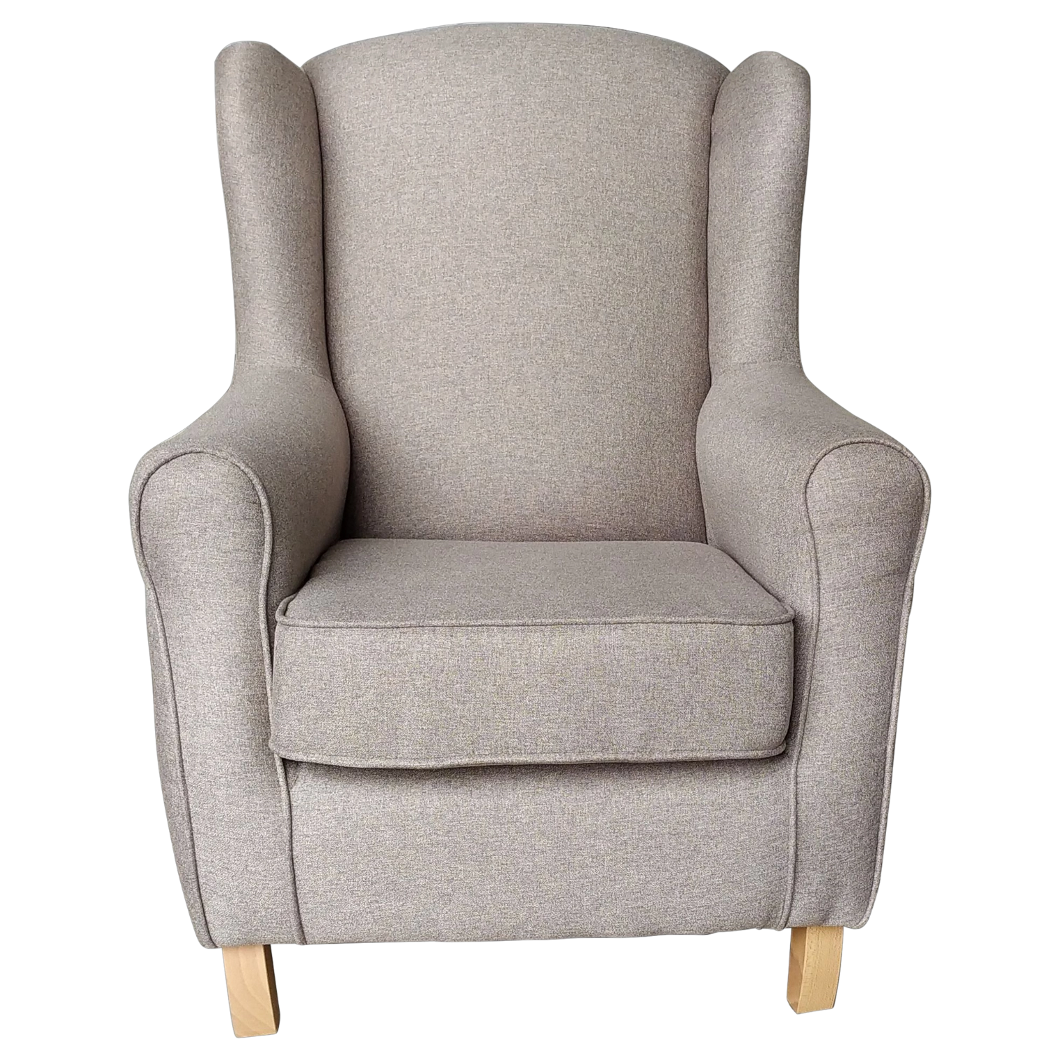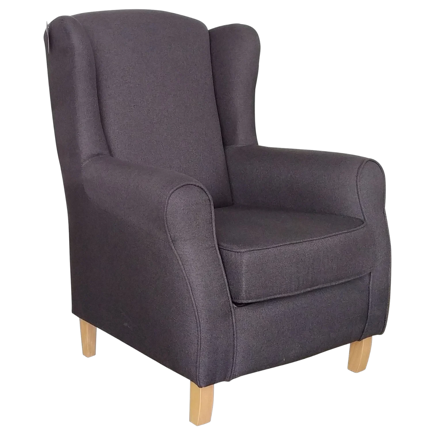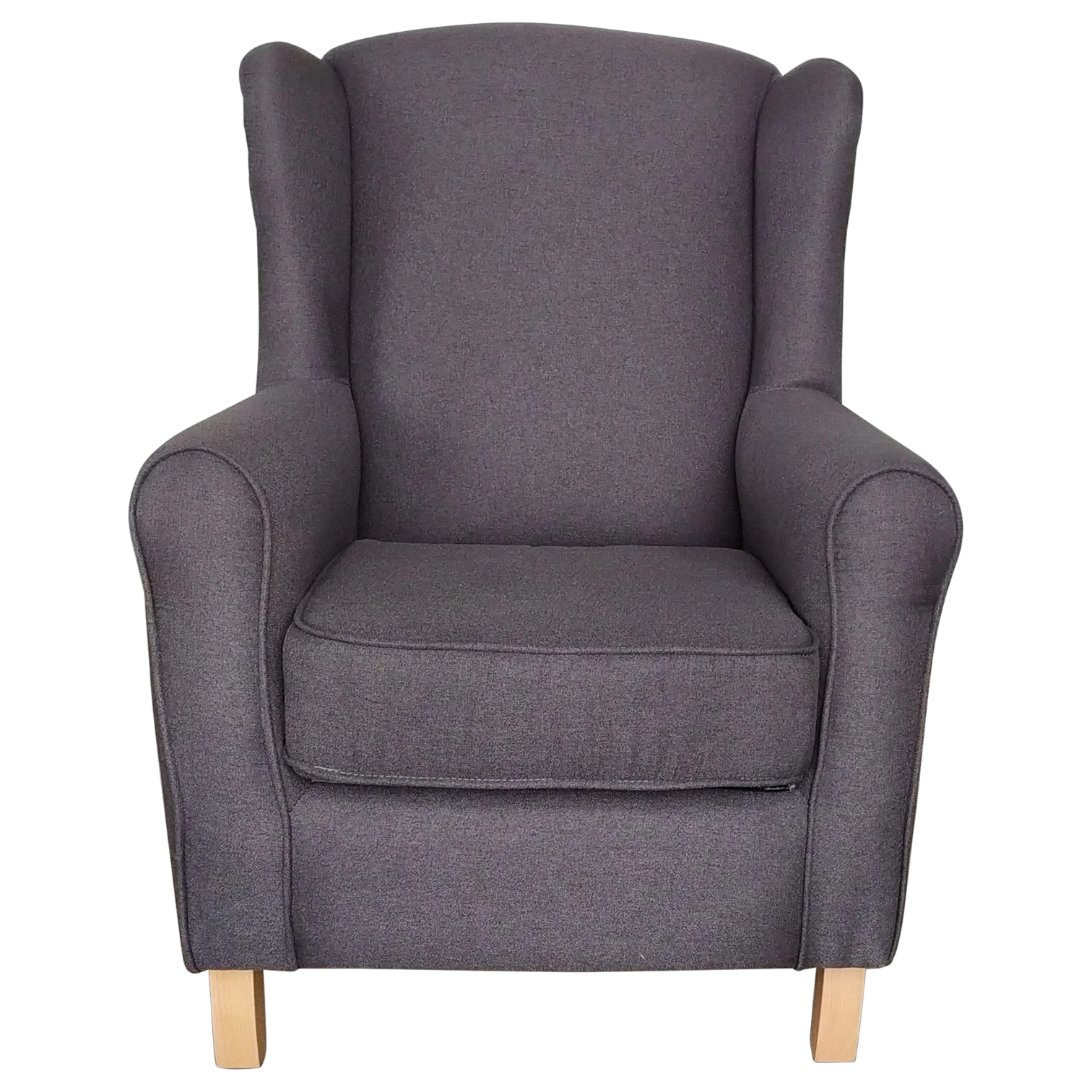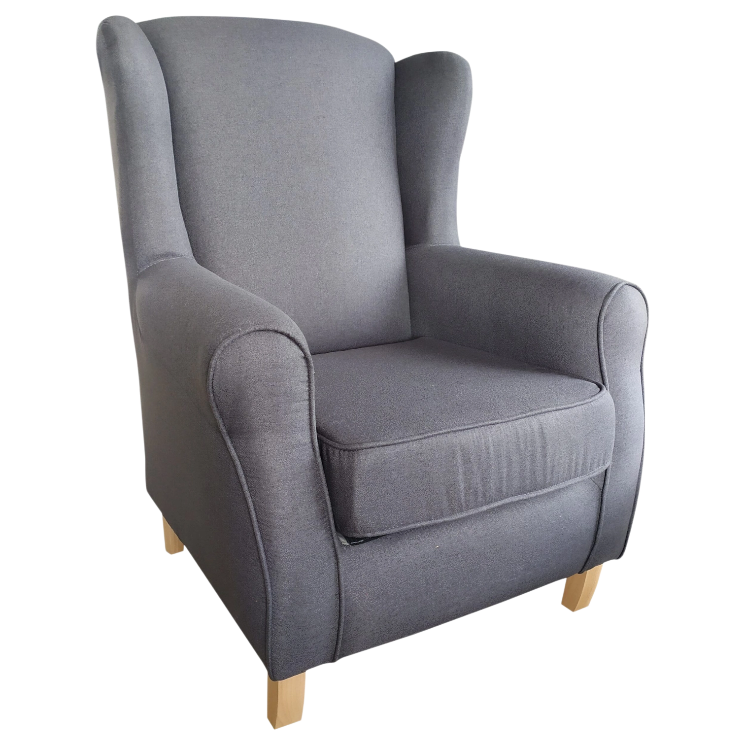 The Mia Armchair combines timeless elegance with modern comfort. Crafted with a solid wood frame and upholstered in premium dark fabric, it offers both durability and sophistication. The high wingback design and soft cushioning provide excellent support, making it perfect for reading or relaxing. With its graceful curves and natural wooden legs, the Mia Armchair adds a refined touch to any home décor.