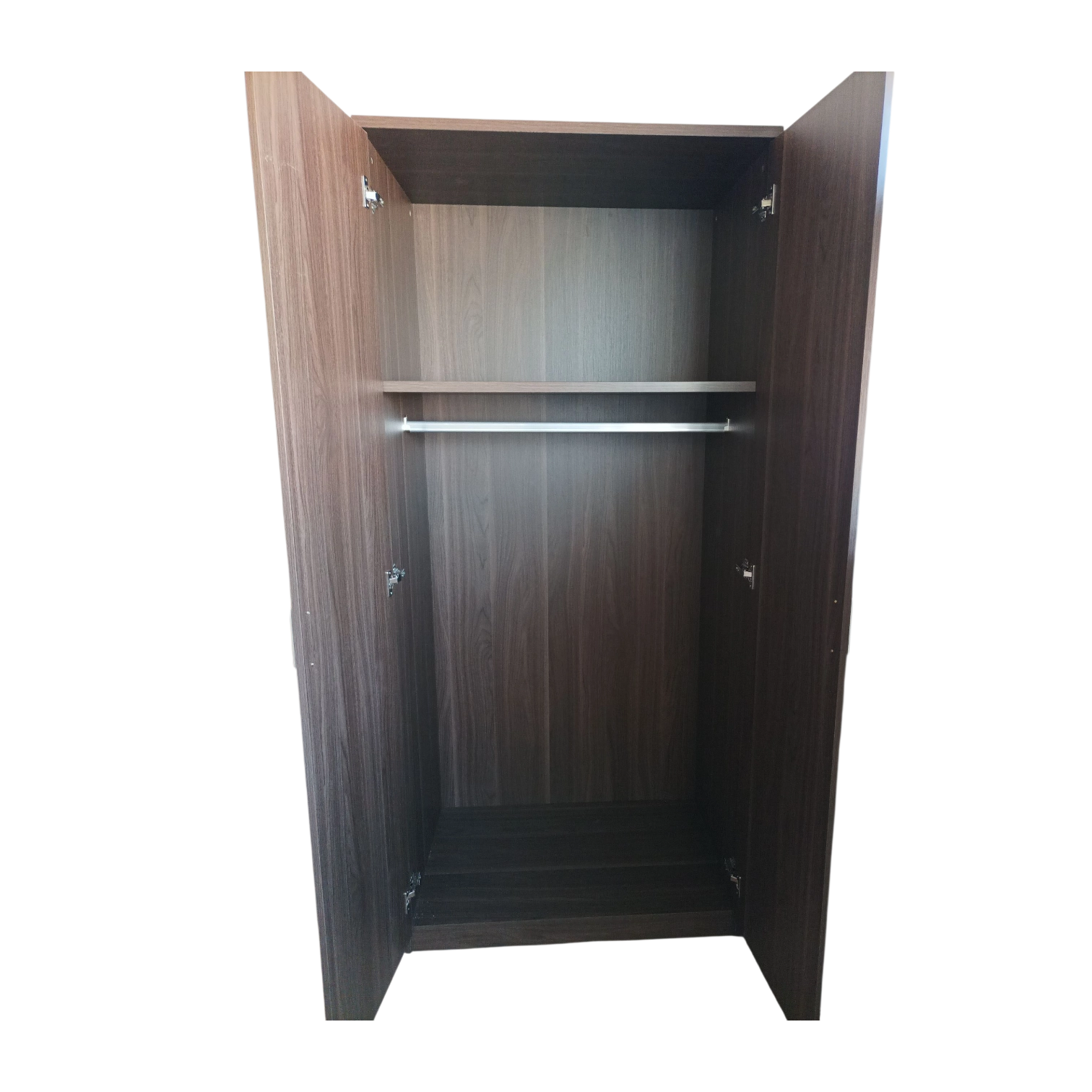 The Osaka Wardrobe blends clean design with everyday practicality. Crafted from durable engineered wood in a deep walnut grey finish, it features a spacious interior with a sturdy hanging rail and lower shelf for extra storage. The minimalist structure and smooth swing doors give it a refined, contemporary look. Perfect for bedrooms or guest spaces, the Osaka Wardrobe keeps your clothing organized in style.