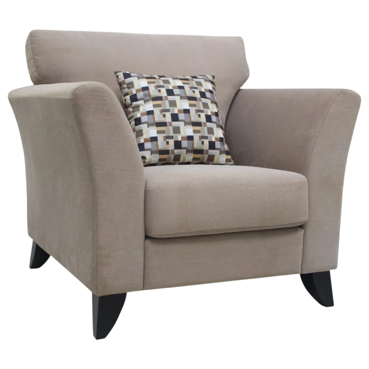 PRAGUE 1 Seater — Modern fabric armchair with soft cushions and angled wooden legs. Brings comfort and style to any living or lounge space.