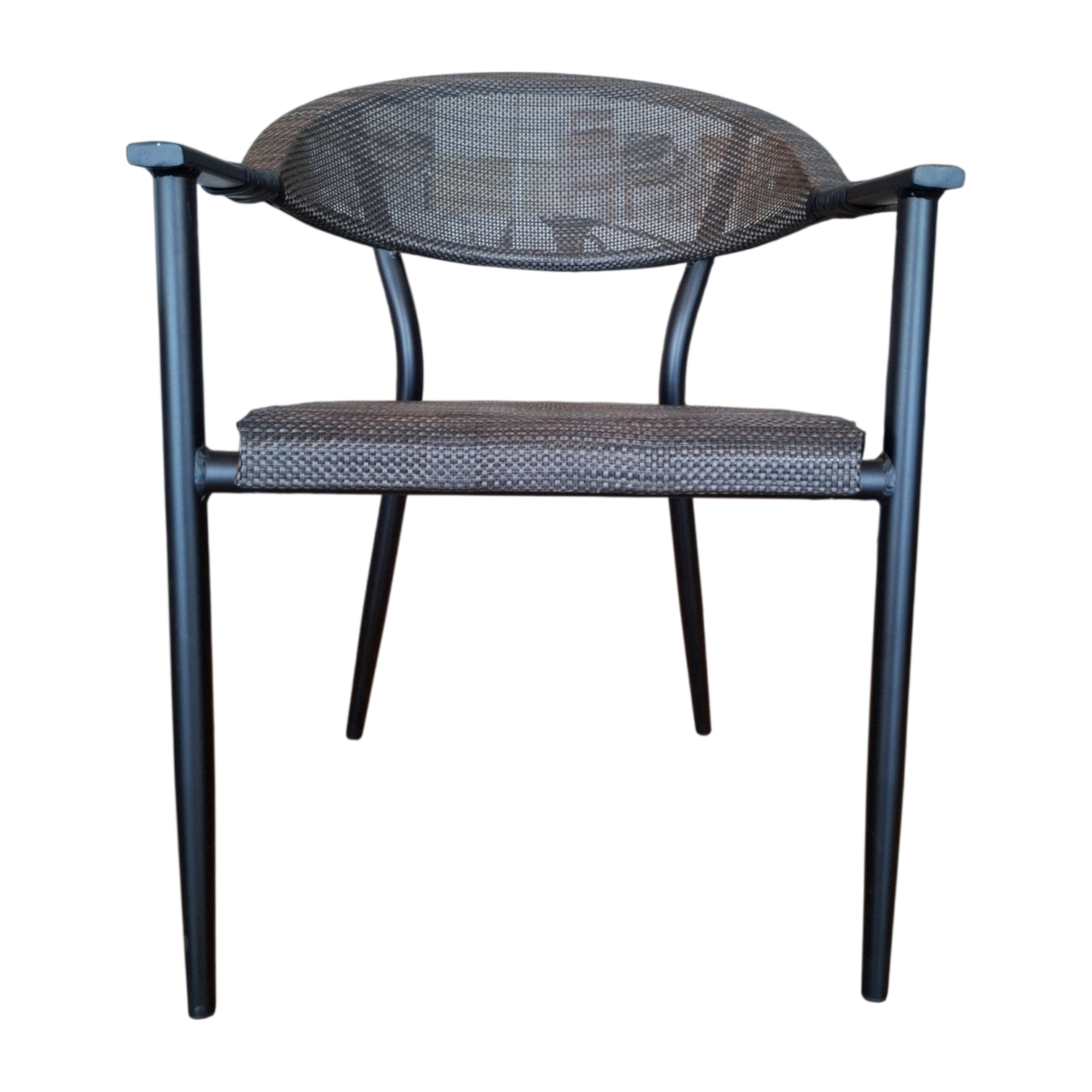 RENEK Armchair — Stylish aluminium armchair with textilene seat and back. Comfortable, durable, and perfect for outdoor cafés or patios.