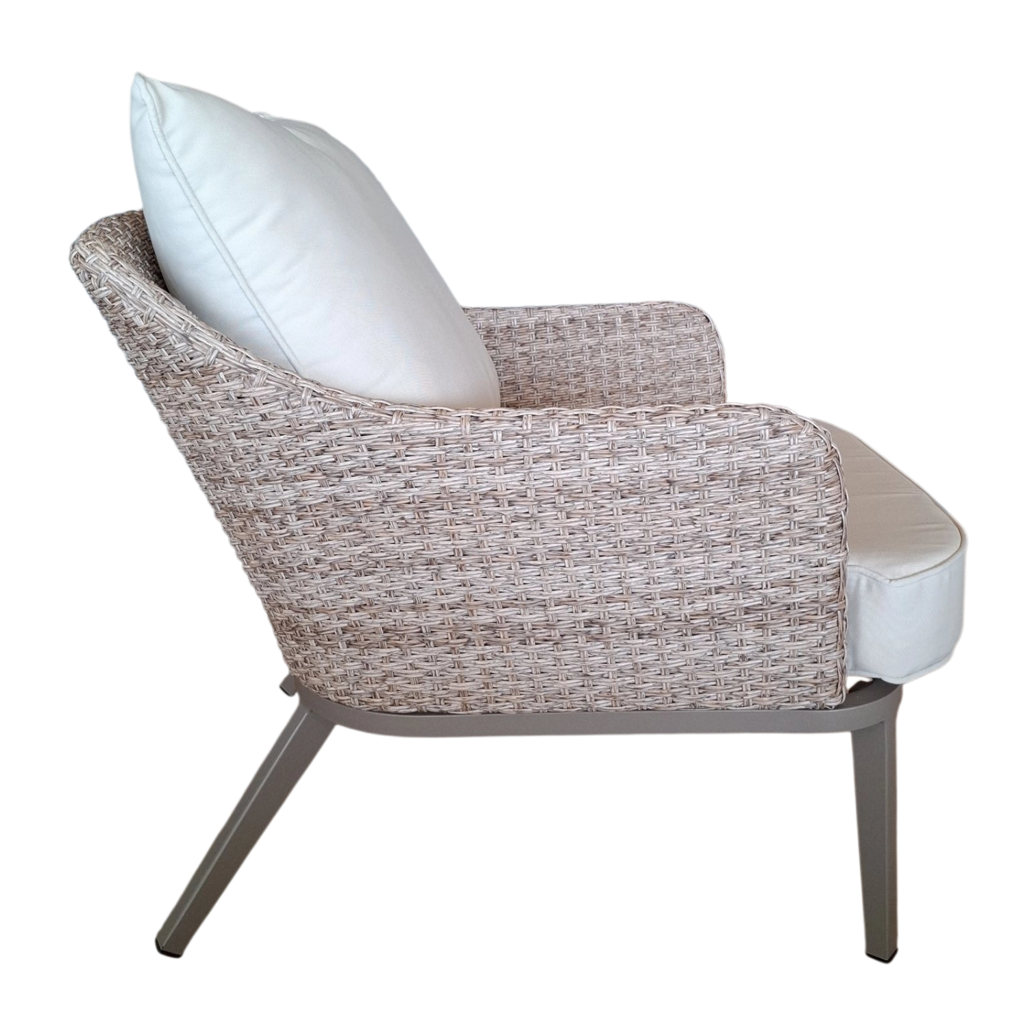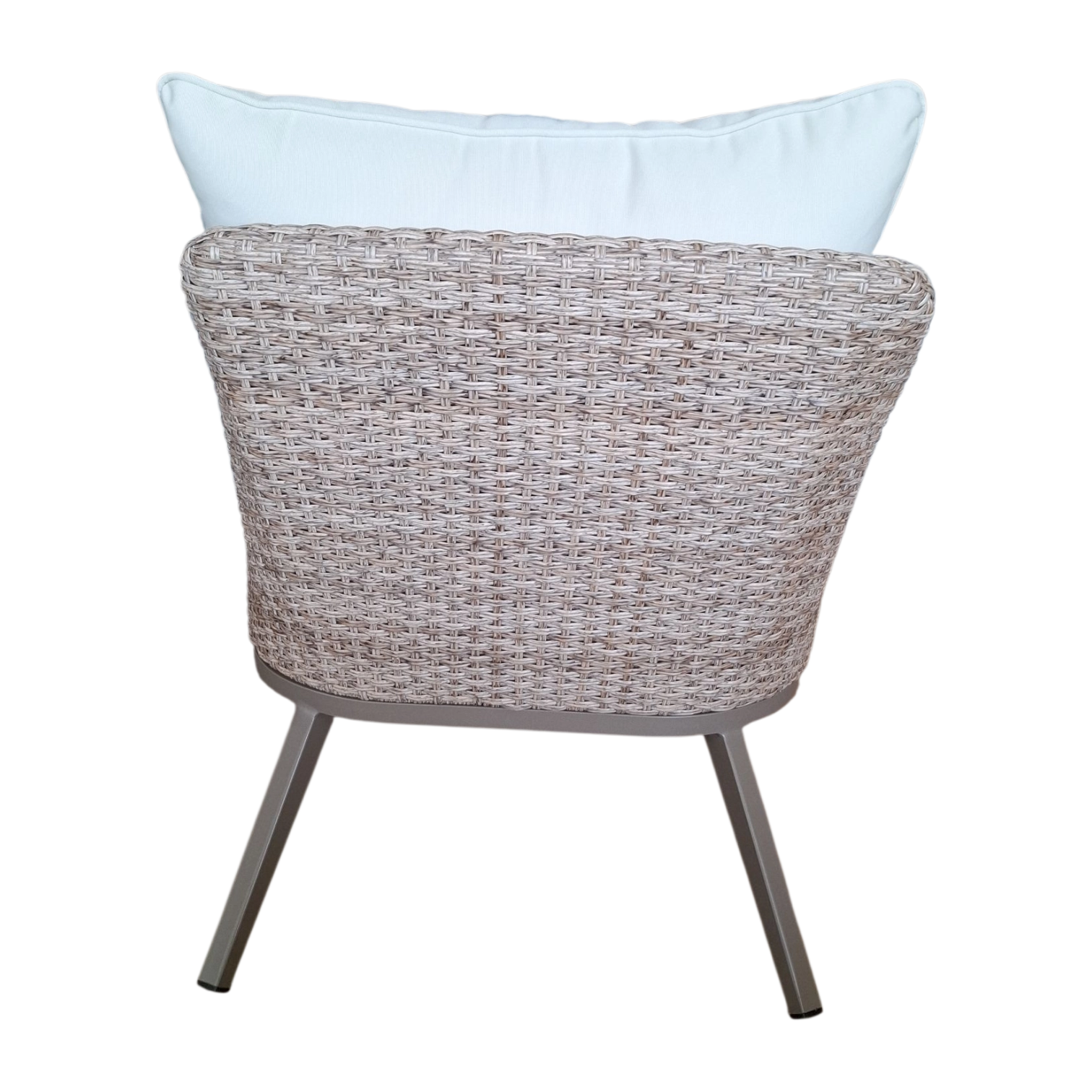 Includes plush, water-repellent cushions in soft beige for ultimate comfort — ideal for outdoor lounging.