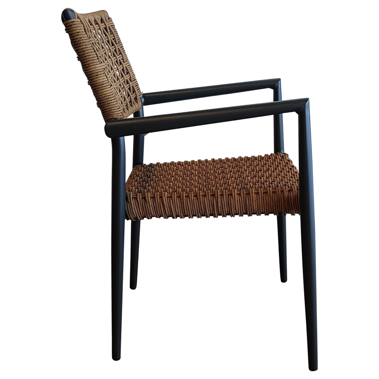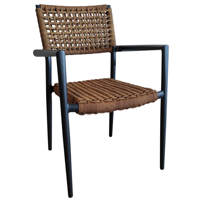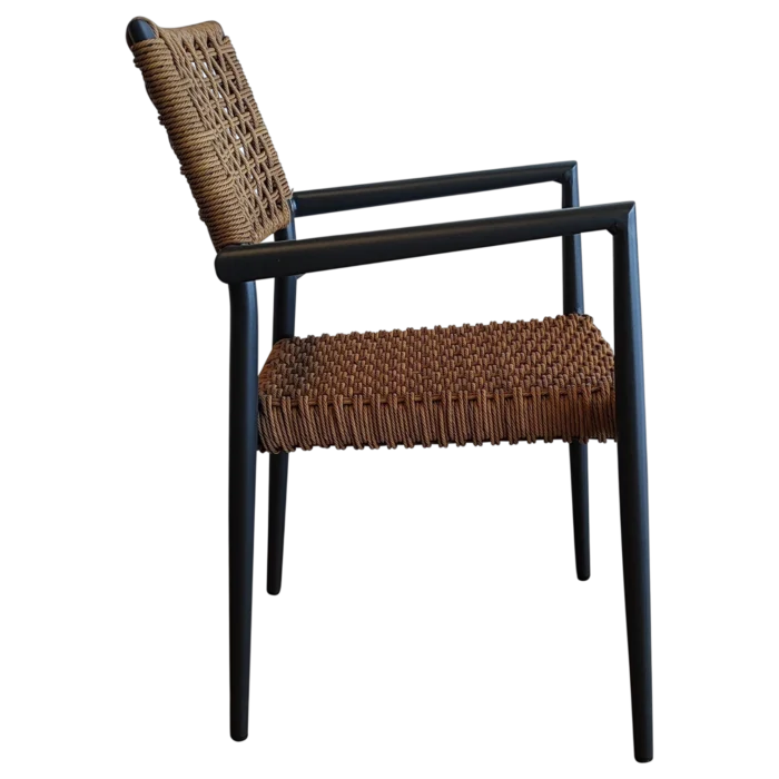 This Woven Brown Weser ArmChair offers a timeless Rattan look with the strength of an Aluminum frame. Weatherproof and lightweight, it’s ideal for gardens, restaurants, or terrace dining. Its woven seat ensures comfort and breathability while maintaining a modern, rustic aesthetic.