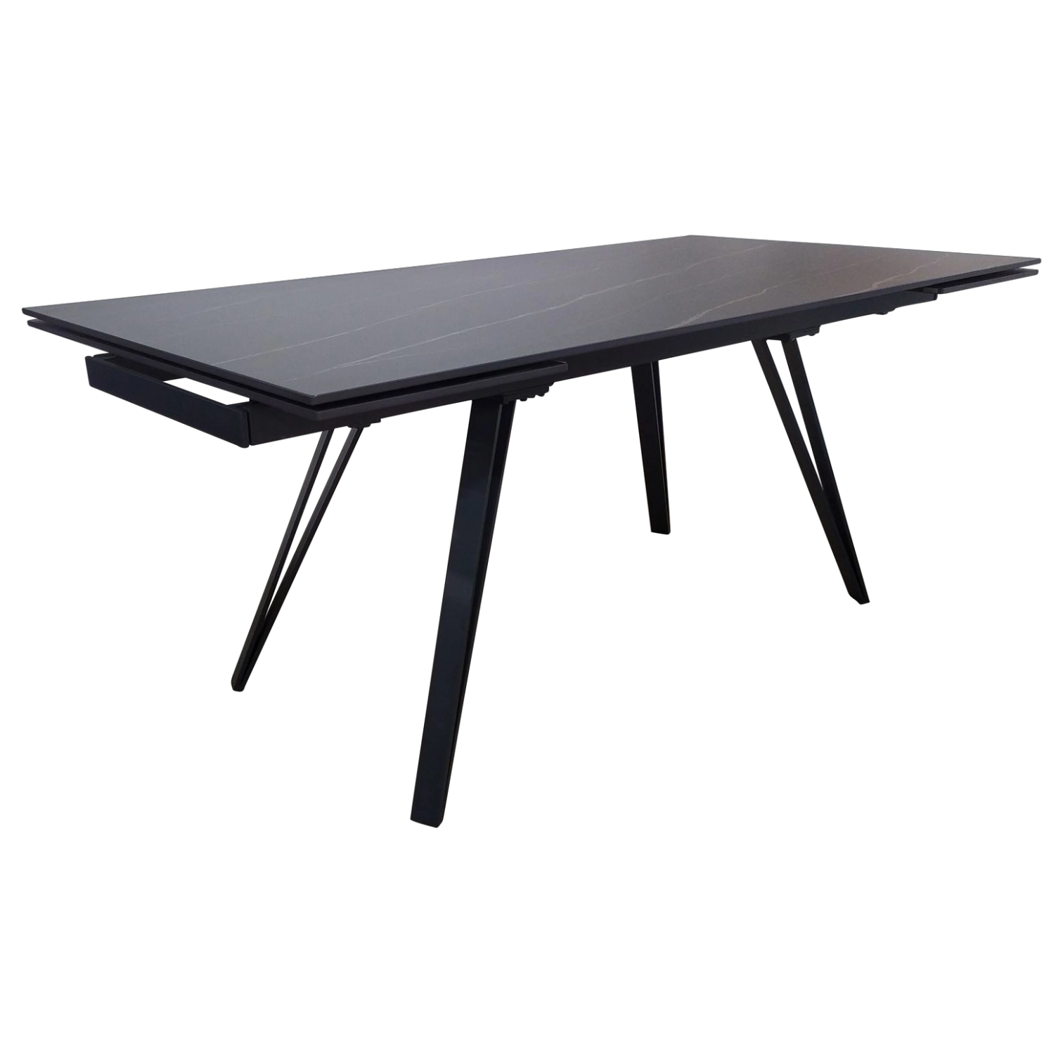 The Maite Dining Table blends sophistication with everyday practicality. Its sleek dark surface and strong angled legs give it a bold, modern feel — perfect for hosting dinners or sharing daily meals in style.